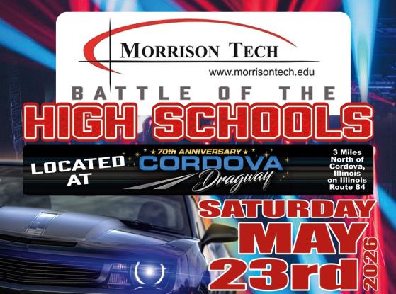 May 23 Saturday BATTLE OF THE HIGH SCHOOLS Cordova Dragway May 23 BATTLE OF THE HIGH SCHOOLS Cordova Dragway Purchase Tickets Pricing Information Spectator $10.00 STUDENT W/ ID $15.00 ADULT SATURDAY $5.00 SAT KIDS 6-11 $0.00 KIDS UNDER 6 Driver $25.00 High School Important Times GATES OPEN: 11 AM HOT ON TRACK: NOON Location Cordova Dragway 19425 IL RT 84 N Cordova IL 61242 Driver Information Spectator Information SCHOOL VS SCHOOL BRACKET RACE: $25 BURNOUT CONTEST: $20; 80% OF ENTRY FEES GOES TO WINNER REACTION TIME CHALLENGE: $10; 80% OF ENTRY FEES GOES TO WINNER PRICING ADULTS (12+): $15 STUDENTS WITH SCHOOL ID (MIDDLE OR HIGH SCHOOL): $10 KIDS (6-11): $5 UNDER 6: FREE Back Please select the type of admission you would like to purchase BATTLE OF THE HIGH SCHOOLS - Driver Purchase Tickets SCHOOL VS SCHOOL BRACKET RACE: $25 BURNOUT CONTEST: $20; 80% OF ENTRY FEES GOES TO WINNER REACTION TIME CHALLENGE: $10; 80% OF ENTRY FEES GOES TO WINNER BATTLE OF THE HIGH SCHOOLS - Spectator Purchase Tickets PRICING ADULTS (12+): $15 STUDENTS WITH SCHOOL ID (MIDDLE OR HIGH SCHOOL): $10 KIDS (6-11): $5 UNDER 6: FREE