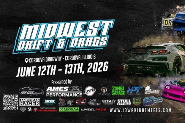 June 12 – 13 Friday – Saturday MIDWEST DRIFT & DRAGS Cordova Dragway The Midwest Drift & Drags are taking over Cordova Dragway June 12–13th for the ultimate automotive party of the summer. Join racers and fans from across the Midwest for two days of horsepower, tire smoke, and nonstop action. Presented by Ames Ford Performance, New Edge Autosports, Off the Line… Jun 12 – 13 MIDWEST DRIFT & DRAGS Cordova Dragway Purchase Tickets Pricing Information Spectator $15.00 ADULT FRIDAY $20.00 ADULT SATURDAY Important Times Event ScheduleFriday, June 12 • 2:00–10:00 PM – Pre-registered drifters enjoy extra seat time Saturday, June 13 • 10:00 AM – Early entry & track time for pre-registered racers, drifters, and VIPs • 12:00 PM – Gates open for spectators and day-of entries • 3:30 PM – Car Show Awards • 6:00 PM – Roll Racing • 7:00 PM – Aussie Burnout contest • 9:00 PM – Gates close Gates open at 9:30am for pre-registered racers and VIP, and noon for all others. Track is hot at 10:00am for Test N Tune. At noon gates open for day of entries and we will begin the qualifying passes immediately followed by eliminations. Roll Racing pops off at 6:00pm. Aussie Burnout Pit at 7:00pm. Gates close at 9:00pm. Location Cordova Dragway 19425 IL RT 84 N Cordova IL 61242 The Midwest Drift & Drags are taking over Cordova Dragway June 12–13th for the ultimate automotive party of the summer. Join racers and fans from across the Midwest for two days of horsepower, tire smoke, and nonstop action. Presented by Ames Ford Performance, New Edge Autosports, Off the Line Performance, Zombi Garage and IMU. If you love America, big horsepower, and badass cars, this is an event you don’t want to miss. We’ve teamed up with Jordan Sharp to bring competitive classes for everyone, including AWD, 5.30 Small Tire, and—for the first time ever at Cordova—Roll Racing. All classes feature low entry fees and over $20k in guaranteed payouts. Show off your ride in the Car Show presented by Wolkings Window Tinting and Driveway Details QC. Compete for trophies, check out incredible builds, and enjoy all the action at Midwest Drift & Drags—included with your registration. Pre-register now to save $10 and receive early entry. Drifters can shred our 77,000 sq. ft. drift pad in this grassroots event open to all skill levels, with packed sidelines full of spectators. Ever dreamed of becoming a sponsored driver? Your drift ticket includes entry into a $2,000 sponsorship giveaway from OTL and IMU. Bring your A-game and pre-register to secure extra seat time. Only pre-registered drivers will receive track time on Friday and early access on Saturday. Zach Rehak will be onsite providing tire changes. Join Boosted Ride, Jacko’s Lux, Mick Hinchy, and more at the Aussie Burnout Contest during Midwest Drift & Drags. We’ve teamed up with Zombi Garage to host the most gangster burnout comp around, with drivers battling it out for BIG money. Event Schedule Friday, June 12 • 2:00–10:00 PM – Pre-registered drifters enjoy extra seat time Saturday, June 13 • 10:00 AM – Early entry & track time for pre-registered racers, drifters, and VIPs • 12:00 PM – Gates open for spectators and day-of entries • 3:30 PM – Car Show Awards • 6:00 PM – Roll Racing • 7:00 PM – Aussie Burnout contest • 9:00 PM – Gates close Gates open at 9:30am for pre-registered racers and VIP, and noon for all others. Track is hot at 10:00am for Test N Tune. At noon gates open for day of entries and we will begin the qualifying passes immediately followed by eliminations. Roll Racing pops off at 6:00pm. Aussie Burnout Pit at 7:00pm. Gates close at 9:00pm. Schedule, rules and pricing subject to change based on availability and other factors Drift Classes -Expedition w/ chance to win a $2k sponsorship from OTL & IMU Race Classes- -Small Tire N/T presented by New Edge Autosports, Dynamic Drivelines and Jolt Systems -5.30 Small Tire presented by HPT Turbo and Quick Performance -True Street presented by American Racer, Custom Whips and Goblin Garage -Street Class presented by Stull Drywall, Stealy Performance and 309 Customs -AWD/DCT presented by Torque Works Engineering and Ames Ford Performance -Roll Racing presented by Nth Moto, After Hours Performance and IMU Car Show presented by Wolkings Window Tinting and Driveway Details QC -Top 20 -Best of Show Spectators are always welcome and the $20 per person entry fee includes pit passes for both drift and drags. Class Rules- Street Class- Vehicle must have tags, insurance, working head/tail lights. Must drive to and from lanes under their own power, methanal allowed, no tire restrictions. Electric vehicles are allowed. True Street- Vehicle must have tags, insurance, working head/tail lights. Must drive to and from lanes under their own power, methanal allowed, no tire restrictions. Electric vehicles are allowed. Must complete a 20-30 minute cruise with event staff during the event. Small Tire Class- Vehicle can run any suspension, 28.105 non W or 275s. Must have a steel roof and quarters, no requirements for fuel, transmissions, interior, exhaust, electronics or shifters, no restrictions on power adders. 5.30 Small Tire- 275 / 28 x 10.5 tires, aftermarket hoods, fenders and doors allowed, No requirements for interior, exhaust, electronics, shifters or fuel, no power adder limit, all engines and transmissions are allowed. AWD/DCT- Must be either DCT or AWD from the factory, no requirements on fuel, interior, exhaust, electronics, shifters, must have engine diaper or catch can, tires must be 28x10.5x15W -OR- any size allowed for 17" or larger. No engine or power adder requirements Roll Racing- No rear street tires (Mickey Thompson Street SS, Street R etc. approved) Radial and slicks only. All drivers must wear- SA2015+ Helmet, pants, closed toed shoes, all vehicles trapping over 165mph are required to have a 5-point harness. Drifting- All drivers/passengers are required
